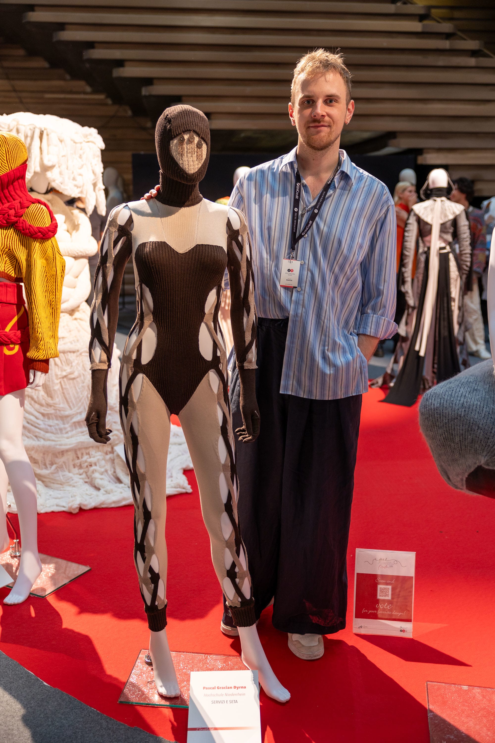 All the outfits of the 36 participants in the Contest, which for the 2024 edition has chosen "Contradictions" as its theme, will be displayed during the Florentine show. During the event, only the finalists will undergo further evaluation. The talent that rises to the top of the podium will be determined by an International Final Jury together with the fair visitors, whose votes will count for a lesser percentage compared to those of the jury members.